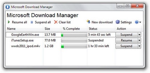 Microsoft Download Manager sẽ cho phép bạn tải về các tập tin từ Internet theo một cách đáng tin cậy hơn và nhanh hơn bằng cách sử dụng một mình trình duyệt. Sử dụng Microsoft Download Manager làm cho dễ dàng hơn để tải về các tập tin lớn như các ứng dụng hay tập tin đa phương tiện. Chương trình được thiết kế đặc biệt để quản lý tải về các tập tin từ trang web Microsoft hỗ trợ theo một cách an toàn và đáng tin cậy.